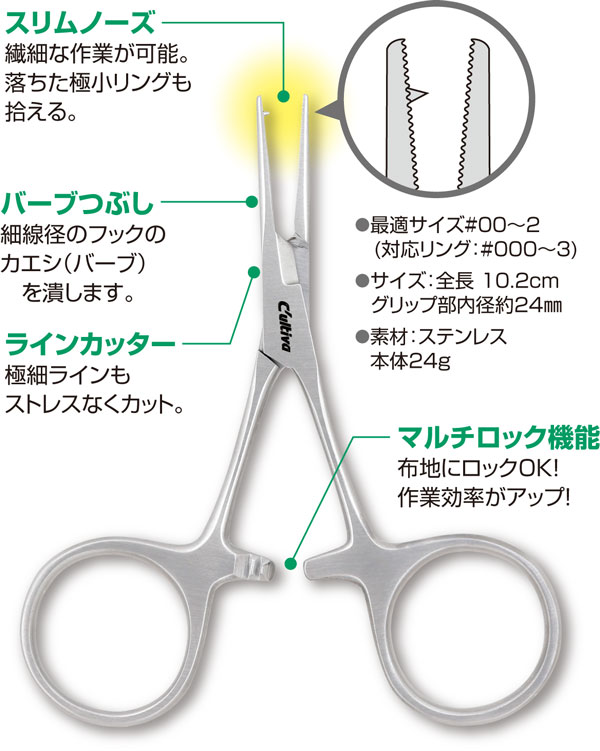 #00~0クラスの極小リングを簡単に開閉でき、リングがズレず作業しやすいニードルオープナー 搭載。