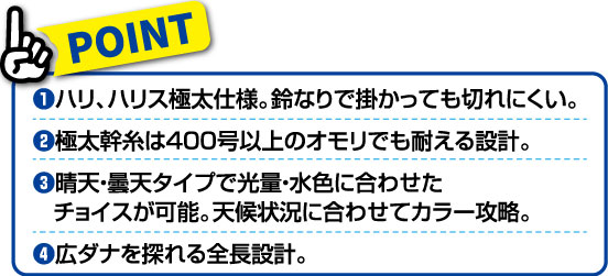 ②極太幹糸は400号以上のオモリでも耐える設計。