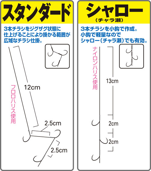 | シャロー(チャラ瀬用)(7.5号) | ナイロン1.5(13cm) | ¥420 | 一角チラシ | 4953873312748 |