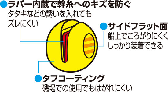 ●ラバー内蔵で幹糸へのキズを防ぐ