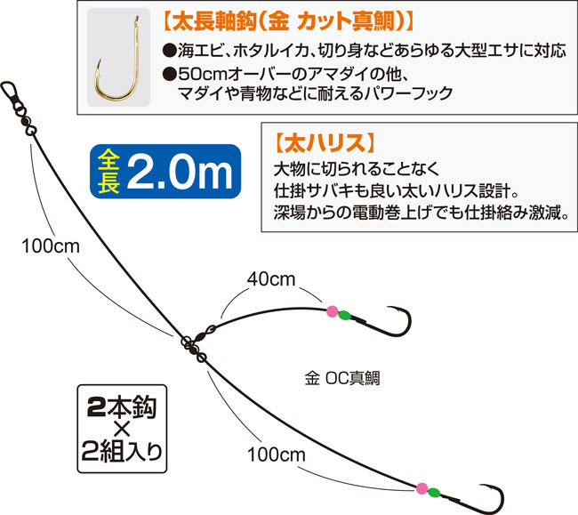 50cmオーバーのアマダイや白アマダイ対応の長太鈎+太ハリス対応仕掛