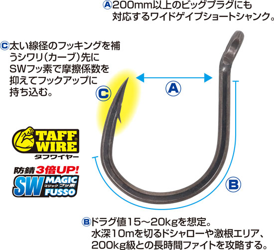| 17/0 | ¥1,300 | 206lb(93.5kg) | 14.8g | 推奨プラグ:270mm前後 | 4953873316357 |