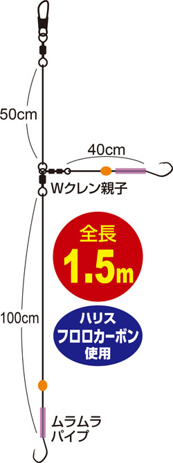 ●幹糸、枝ハリス部分にWクレンを使用することでトラブル減少