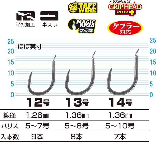 12号…シーズン序盤、小さめの餌用。主に小さ目のイガイによるフォールHIT向け。