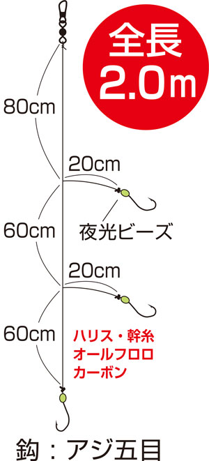 「アジ五目鈎」使用のアジビシ基本仕掛
