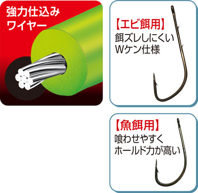 | エビ餌用 | ¥650 | サーベルフックWX#4/0 | 適合オモリ:20~60号 | 4953873316982 |