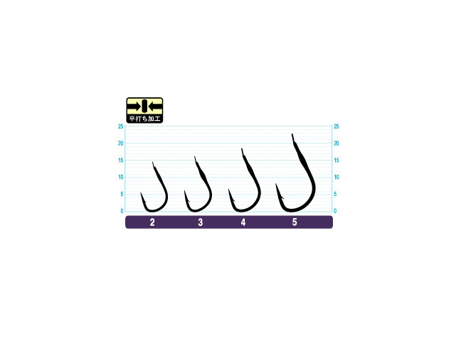 カラス貝を使用するとき、又はカニの尻掛け以外のときにご使用ください。ハリの上部のヒラウチの所にオモリをつけるため、ハリスが結びやすいように少し長軸にしています。
