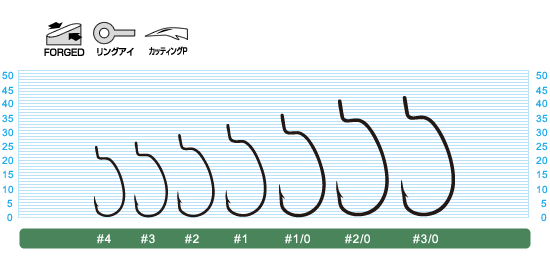 ファットなボディーのワーム、特にチューブワームやグラブでの、より繊細な釣りに対応する独自のフォルム。鈎先はカッティングポイント(P.A.T)を採用することで、フッキングの確実性を格段とアップしました。号数は、どのワームサイズにも対応する♯4~♯3/0の7サイズ。