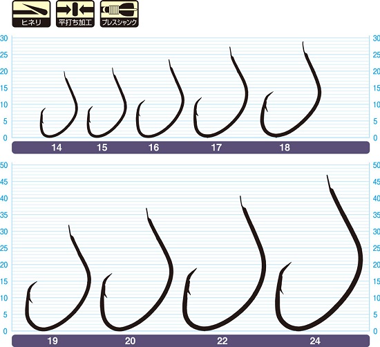 超軽量だから抜群に喰い込みが良く、根魚専用のヒネリが喰わえた魚を見逃さない。さらに、根掛かりしにくいフォルムがスピーディーに釣果を生みます。プレスシャンクPAT.Pによりハリスの回りやズレを防止する。