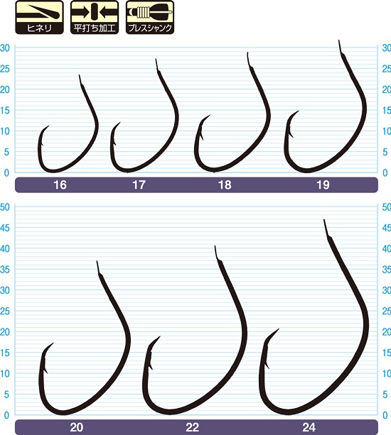 超軽量だから抜群に喰い込みが良く、根魚専用のヒネリが喰わえた魚を見逃さない。さらに、根掛かりしにくいフォルムがスピーディーに釣果を生みます。プレスシャンクPAT.Pによりハリスの回りやズレを防止する。