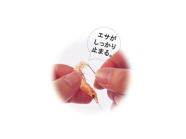 新発想の「ソフトキーパー」を採用しました。とても細くて、ソフトなエサ止めです。段差のないテーパー仕上げは手巻きだから可能になりました。沖アミや虫エサなど、柔らかいエサを刺すときでも身崩れしません。刺した後もしっかりキープし続ける、とても繊細な細工です。