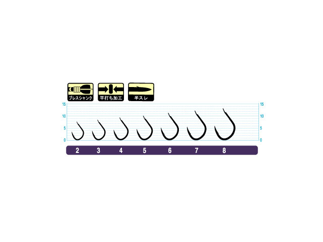 厳寒期の喰い渋り、見えているのに活性が低い。そのような状況下を攻略するため、独自の線径設定で軽量化を図り、超短軸設定が喰い渋るグレを違和感なく喰わせます。また、湾内や潮流が穏やかな場所でも、ゆっくりと仕掛が馴染みグレに警戒心を与えにくいです。号数も2号から取り揃え、刺しアミ・ムキエサにも対応し、エサ付けもしやすいです。